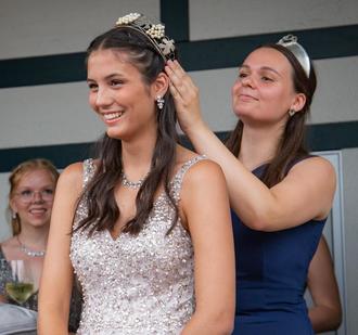Nachdem die neuen Wohnhoheiten zu den Klängen von „Du schöne Moselanerin“, gespielt von der Winzerkapelle Kinheim, die die Veranstaltung unter dem Dirigat von Christian Lässer musikalisch begleitete, auf den Platz einmarschiert waren, wurde die neue Weinkönigin Vanessa Herges durch die Moselweinkönigin Sarah Röhl gekrönt. Ihr zur Seite stehen als Prinzessin Marie-Sophie Griebler und Leonie Zenz, die alle drei gemeinsam in den nächsten beiden Jahren für unseren Wein und unsere Tourismusbetriebe werben werden.