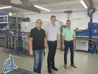 Gemeinsames Engagement für eine leuchtende Zukunft (v.l.): Werkleiter Jens Burch, Bürgermeister Marcus Heintel und Westenergie-Regionalmanager Marco Felten im Wasserwerk der Verbandsgemeinde Traben-Trarbach