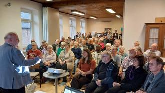 Vollbesetzt mit rund 85 Menschen war im Bürgerhaus von Flußbach der Saal als Dr. Lena Haase von der Uni Trier wissenschaftliche Informationen zum ehemaligen Frauenstraflager und dem Schicksal einiger Frauen gab. Ortsbürgermeister Wolfgang Scheibe begrüßte mit dem Gemeinderat die Mitorganisatoren Bürgermeister Marcus Heintel, das Emil-Frank Institut mit Monika Metzen-Wahl und Dieter Burgard vom Förderverein Gedenkstätte KZ Hinzert.