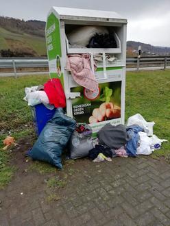 Das Ablagern vor dem Altkleidercontainer ist illegale Müllentsorgung.
