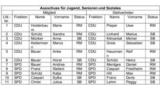 | 4.a | Wahl der Ausschussmitglieder und Stellvertreter für die zu bildenden Ausschüsse a) Ausschuss für Jugend, Senioren und Soziales |