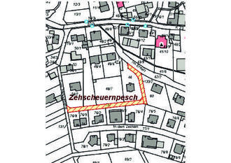 Die Ortsgemeinde Flußbach beabsichtigt den unbefestigten Fahrweg zwischen den Straßen „Im Entelt“ und „Zum Messeberg“ Gemarkung Flußbach, Flur 13, Nr. 132, 585 m² und Nr. 133/2, 288 m², komplett zu verkaufen. Die Lage des Weges ist im nachfolgenden Plan farblich mit Schraffur gekennzeichnet.