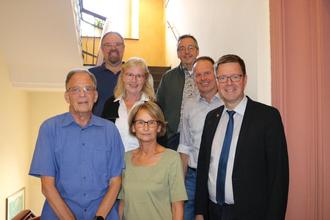 v. l. n. r.: Manfred Schneider, Fachbereichsleiter Sascha Kamphoff, Personalratsvorsitzende Martina Mettler, Martina Trapka, Büroleiter Frank Kroch, Fachbereichsleiter Frank Thullen, Bürgermeister Marcus Heintel
