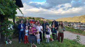 Ausgelassene Stimmung herrschte beim Abschlussgrillen (14.10.23) vor der malerischen Kulisse des Moseltals des Projektes „Kinderwingert“, kurz KIWI: Von der Traube bis zur Ernte lernen Kinder den Wachstumszyklus der Weintrauben kennen, bis diese dann schlussendlich geerntet, gekeltert und zu Saft verarbeitet werden können. Das ganze Jahr über wurden die Rebstöcke von den Kindern gehegt und gepflegt, von Schädlingen befreit und auf ihre Süße getestet, bis es endlich zur Ernte kommen kann. Begleitet werden die angehenden Traubenexpert*innen von Peter Storck und Achim Ochs, beides Spezialisten ihres Fachs, die sich wunderbar ergänzen: Winzerhandwerk und Meteorologie, denn wie so oft im Leben kann das Eine ohne das Andere nicht sein und beeinflusst sich gegenseitig. Support erhalten die beiden engagierten Herren von Frau Jutta Meiser Sanne, Lehrerin und Referentin für Umweltbildung, die die Beobachtungen der Kinder mit wertvollen Tipps rund um die heimische Flora und Fauna ganzheitlich ergänzt. Das Projekt regt die natürliche Neugier der Kinder an, ihre Umwelt aktiv zu bergreifen und zu gestalten. Das Hegen und Verantwortung für die Gewächse und Früchte zu übernehmen geschieht nebenbei, hat aber einen großen Mehrwert in Sachen Wahrnehmung, sozialer Interaktion und Umweltbildung. Da wird auch der teilweise mühevolle Aufstieg im Wingert zur Nebensache, wenn man sich ganz intensiv der Testung des Zuckergehaltes der Trauben widmet.