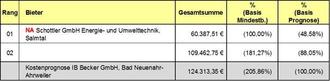 Nach Auswertung des verbleibenden Angebotes ergab sich folgender Preisspiegel:
