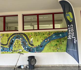 Auf zwei Elementen stellten die Kinder der 4. Klasse der Grundschule Reil den Mosellauf unserer Verbandsgemeinde dar. Auf einem Element wurde die Mosel und die angrenzende Region gezeigt, wie sie vielerorts ist. Das zweite Element zeigt, wie die Mosel sein müßte. Das Projekt wurde im Kunstunterricht integriert und so konnten sich alle Schüler und Schülerinnen einbringen. Sie waren mit Begeisterung dabei und es war toll zu erfahren, wieviel die junge Generation über Umweltschutz weiß und auch auslebt.