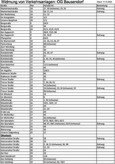 Zur besseren Übersicht kann der Umfang der gewidmeten Verkehrsflächen aus den ebenfalls anhängenden Kartenausschnitten entnommen werden. Hierbei handelt es sich um verkleinerte Abbildungen, die nicht maßstäblich sind.