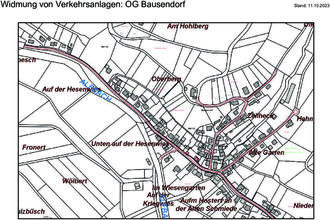 Der Ortsgemeinderat Bausendorf hat in seiner Sitzung vom 11.10.2023 den Beschluss gefasst die in der anhängenden Tabelle aufgeführten Flurstücke innerhalb der Ortsgemeinde Bausendorf in seiner Funktion als Straßenbaulastträger für Gemeindestraßen nach § 14 Landesstraßengesetz (kurz: LStrG), gültig in der derzeitigen Fassung, mit sofortiger Wirkung dem öffentlichen Verkehr zu widmen.
