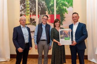 v.l.n.r.: Beigeordneter der VGTT Eugen Klein, Beigeordneter Christian Franzen, Julia Molitor-Justen, Marco Felten