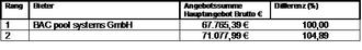 Drei Fachfirmen wurden zur Abgabe eines Angebotes aufgefordert. Zwei Firmen haben sich am Wettbewerb beteiligt.