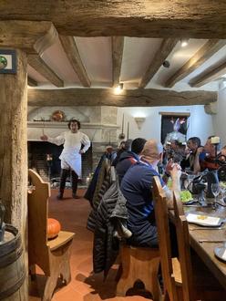 Dabei wurden wir von zwei Mägden und dem Koch in ihrer mittelalterlichen Tracht in vollendeter Form bedient, die dazu noch kleine Geschichten vortrugen.