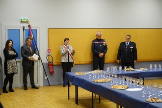 Von dort gingen wir zusammen ins Gemeindehaus, wo ein Jahresrückblick über das Jahr 2022 durch den Wehrführer Luc Waluszka, die Bürgermeisterin Cocheton und etliche hochrangige Ehrengäste gehalten wurde. Die Redner*innen bedankten sich bei den Feuerwehrmitgliedern aus Selles-sur-Cher für die geleistete Arbeit.