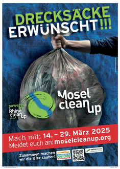 Bitte meldet euch für MoselCleanUp an. Für all diejenigen, die mit Sammelutensilien, Banner etc. ausgestattet werden möchten, ist der 7. März Stichtag. Für diejenige, die keine Ausstattung benötigen, ist eine Registrierung unter moselcleanup.org jederzeit möglich.