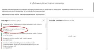 Hier können Sie sich dann die gewünschte Sitzung aussuchen und beim Anklicken wird die jeweilige Tagesordnung aufgeführt.