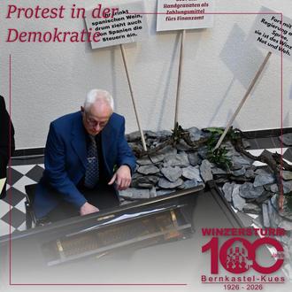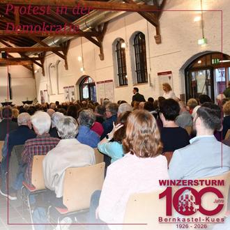 Am 25. Februar 2026 ist in zwei Festveranstaltungen in Bernkastel-Kues an das 100. Jubiläum des historischen „Winzersturms auf das Finanzamt Bernkastel“ erinnert worden. Aus diesem Anlass haben sich die Verbandsgemeinde Bernkastel-Kues mit Bürgermeister Leo Wächter, das Finanzamt Wittlich mit der Leiterin Dr. Julia Köster, der Bauern- und Winzerverband Bernkastel-Wittlich mit Geschäftsführer Pascal Kersten und als Kooperationspartner die Kueser Akademie für Europäische Geistesgeschichte e. V., vertreten durch den Geschäftsführer Dr. Matthias Vollet, zusammengeschlossen und unter dem Titel „Protest in der Demokratie“ eine Ausstellung sowie eine Vortrags- und Podiumsdiskussionsveranstaltung konzipiert.