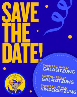 Damit sich alle Karnevalsfreunde unsere Veranstaltungen frühzeitig vormerken können, geben wir schon heute die Termine für unsere Sitzungen bekannt. Bitte beachtet dabei, dass wir aus organisatorischen Gründen unsere zweite Galasitzung auf einen Freitag und die Kindersitzung auf einen Samstag legen mussten.