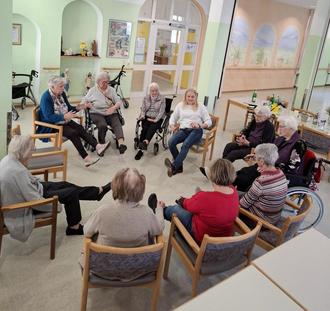 Viele Bewohner*innen aus beiden Wohnbereichen beteiligen sich begeistert an diesem Angebot der Mitarbeiterinnen der Sozialen Betreuung.