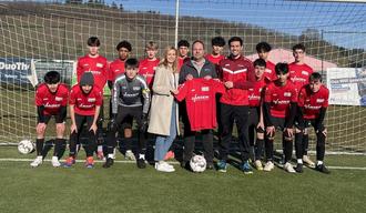 Im Rahmen des Spiels fand auch die Übergabe eines neuen Trikotsatzes statt, gesponsert vom Förderverein der Kurfürst-Balduin-Realschule plus und Metallbau Gansen in Salmtal.
