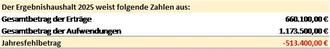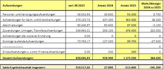 Unter Berücksichtigung dieser Vorgaben ergeben sich somit folgende Festsetzungen im Ergebnishaushalt 2025