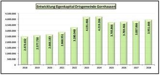 Der Saldo aus der Investitionstätigkeit beläuft sich auf minus 562.500 € und wird aus den vorhandenen liquiden Mitteln der Ortsgemeinde Gornhausen finanziert.