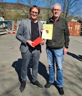 Markus Ruf (25 Jahre Dienstjubiläum) mit Stadtbürgermeister Roman Bastgen