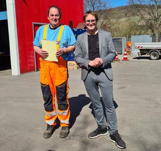 Markus Ruf, Leiter des Bauhofes der Stadt Bernkastel-Kues und Horst Müller, Mitarbeiter des Bauhofes, haben gemeinsam mit den Kollegen jetzt ihr 25jähriges Dienstjubiläum gefeiert.