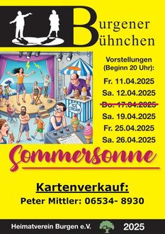 Die Theatergruppe des Heimatvereins Burgen e. V. – Burgener Bühnchen – präsentiert ihr neues Theaterstück „Sommersonne”.