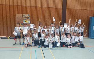 Platz 1 mit 4 Punkten mit Lennard Frenzer, Mats Freis, Max Petry, Moritz Rieb, Laura Rieb, Caspar Klein, Emil Klein und Samuel Thormann