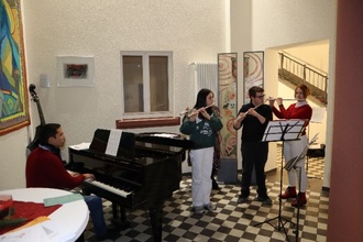 Einfühlsam begleitet wurden die jungen Künstlerinnen und Künstler von Frau Gerda-Koppelkamm-Martini (Flöte) und Herrn Rolando Valdés (Klavier).
