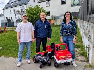 „Wir wollten den Kindern eine Freude machen und gleichzeitig spielerisch ihr Interesse an der Feuerwehr wecken“, so die Beteiligten vom Förderverein und der Feuerwehr. Die Fahrzeuge wurden natürlich sofort in Beschlag genommen – mit viel Tatütata, Fantasie und Begeisterung.