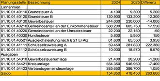 Die Ansätze 2025 orientieren sich im Wesentlichen an den Ergebnissen der Vorjahre. Beim Finanzausgleich (Einkommenssteueranteile etc.) auch auf Vorgaben des Ministeriums im Rahmen der Steuerschätzung.
