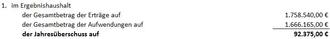 Der Ergebnishaushalt sieht gemäß § 1 Ziffer 1 der Haushaltssatzung folgende Planzahlen vor: