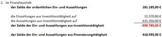 Die Festsetzungen im Finanzhaushalt (§ 1 Ziffer 2) belaufen sich auf: