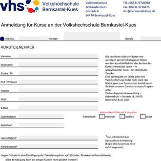 Interessierte Lehrkräfte/Kursleiter können sich bei der VHS Bernkastel-Kues melden.