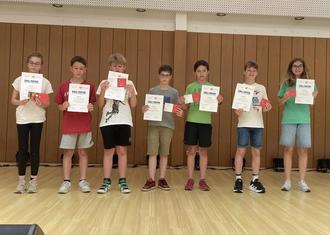 Erste Preise erzielten Elias Kläser (5a), Max Kolz (6a) und Clara Becker (7a). Zweite Preise errangen Felix Sommer (5b), Vincent Schwaab (6c) und Moritz Doppelhamer (7a), während dritte Preise an Isabell Schneider (5d), Jonas Pitz (6c) und Fabian Erz (7a) gingen.