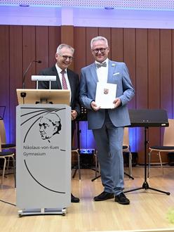 Mit großem Applaus und sichtlicher Wertschätzung verabschiedete sich die Schulgemeinschaft von einem Schulleiter, der das Nikolaus-von-Kues-Gymnasium in den vergangenen Jahrzehnten maßgeblich mitgestaltet hat. Für seinen neuen Lebensabschnitt wünschten ihm alle Anwesenden Gesundheit, Zufriedenheit – und ein wenig Abstand zu Gleichungen, Stundenplänen und Konferenzen.