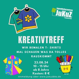Also schnappt euch zwei T-Shirts die ihr gestalten wollt, oder mehr, meldet euch über die Homepage an, und dann ab zu uns ins JUKUZ.
