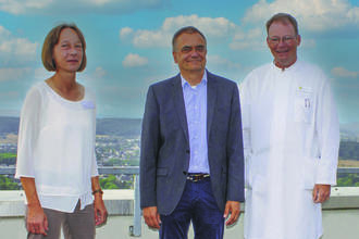 Von links nach rechts: Ulrike Schnell, kfm. Direktorin und Geschäftsführerin der cusanus trägergesellschaft trier mbH Martin Balsliemke, Neuer Chefarzt für Gastroenterologie, Dr. med. Klaus Mahler, ärztliche Direktor