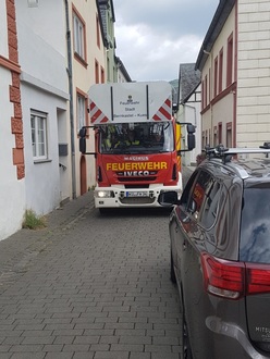 Grundsätzlich verboten ist das Parken auf den Weinbergswegen in Kues und in den Randbereichen der Wohngebiete. Das „Wildparken“ hat sich leider generell in den vergangenen Jahren in der gesamten Stadt verschärft, so dass hier in vielen Bereichen die Durchfahrt für Rettungs- und Einsatzfahrzeuge nicht mehr gewährleistet war. Wie das Beispielfoto zeigt, wäre im Einsatzfall für die Rettungsfahrzeuge ein Durchkommen zur Einsatzstelle nicht mehr möglich gewesen. Insbesondere die Großfahrzeuge der Feuerwehr benötigen für ein zügiges Durchkommen eine Mindestbreite von 3,05 Metern. Zudem muss bei den engen Straßenverhältnissen der jeweilige Einmündungsbereich mindestens 5 m freigehalten werden, damit die Fahrzeuge dort ebenso zügig einbiegen bzw. ausfahren können.