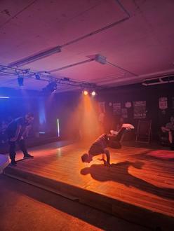 Vor ca. 20 Zuschauern traten die 4 Tänzer nacheinander im „Jeder gegen Jeden“ Format an. Johannes und Tobi, die gemeinsam mit dem JUKUZ die Idee hatten, erklärten den Zuschauern das Format, und was die nächsten 2 Stunden in der Tonstation passieren wird. Und das war einiges was sich die Tänzer haben einfallen lassen. Auf der extra gebauten, leicht erhöhten Bühne konnten die Zuschauer von allen Tänzern eine beeindruckende Show bewundern. Ob einarmige Handstände, Sprünge oder sinnliche Darbietungen auf Geigen Hip-Hop, es war für alle was dabei. Und die 4 Tänzer haben es sich nicht nehmen lassen, am Ende der Veranstaltung noch einmal gemeinsam aufzutreten.