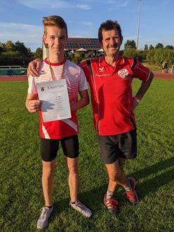 SFG Abteilungsleiter Wolfgang Baum freute sich über die Teilnahme seines Schützlings Jonas Schnitzius am Sportfest in Konz nach langer Trainings,- und Wettkampfpause.