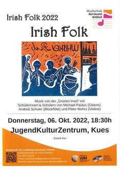 Am 06.10.2022 könnt ihr gemeinsam mit Michael Paulus und Schülern der Kreismusikschule Bernkastel-Wittlich eine musikalische Reise zu den „Grünen Inseln“ machen. Ab 18.30 Uhr habt ihr die Möglichkeit Irish Folk Musik in der Tonstation zu genießen.