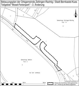 Das Plangebiet befindet sich unmittelbar an der B50 alt zwischen Machern und Platten. Der künftige räumliche Geltungsbereich des Bebauungsplans ergibt sich aus dem besonders abgedruckten Kartenausschnitt. Es sind folgende Parzellen von der Aufstellung des Bebauungsplans betroffen: Gemarkung Wehlen, Flur 2, Flurstücke 3/2 (teilw.), 31/20 (teilw.) und 354/31 (teilw.). Für den dargestellten Bereich wird der bestehende Bebauungsplan „Mosel-Ferienpark“ geändert. Der von der Änderung betroffene Bebauungsplan „Mosel-Ferienpark“ stellt eine gemeinsame Satzung der Ortsgemeinde Zeltingen-Rachtig und der Stadt Bernkastel-Kues dar. Da die Grundzüge der Planung nicht tangiert sind, erfolgt die Änderung im vereinfachten Verfahren gemäß § 13 BauGB.