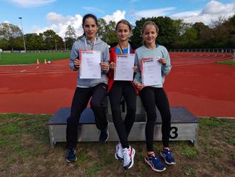Ganz knapp verpassten die jüngsten SFG Mehrkämpferinnen Emma Discher als Vizemeisterin und Xenia Trossen als Bronzemedaillengewinnerin in der Altersklasse W12/13 den begehrten Deutschen Meistertitel im Leichtathletik Fünfkampf bei der Mehrkampf DM in Bruchsal. Das gute Ergebnis rundete die noch dem jüngeren Jahrgang angehörende Miene Weis als Achte mit drei persönlichen Bestleistungen ab.