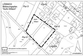 Das Plangebiet ist südwestlich des Friedhofs gelegen. Der künftige räumliche Geltungsbereich des Bebauungsplans ergibt sich aus dem besonders abgedruckten Kartenausschnitt. Es sind folgende Parzellen von der Aufstellung des Bebauungsplans betroffen: Gemarkung Lösnich, Flur 6, Flurstücke 14, 15 teilweise, 16, 17 und 27 teilweise.