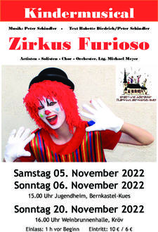 Der Kinder/Jugendchor der Pfarrei St. Briktius, Bernkastel-Kues führt mit einen echten 17 köpfigen Zirkusorchester, vielen Solisten und Artisten das Musical „Zirkus Furioso“ auf.