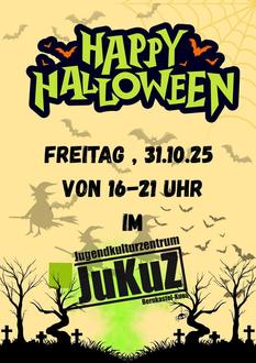 Kommt vorbei und feiert mit uns gemeinsam Halloween, der Eintritt ist umsonst. Wir brauen Hexendrunk und futtern Monstersnacks. Wir freuen uns, wenn ihr kostümiert kommt. Mal schauen wer das schönste Kostüm raushaut. Wir werden sehr lustige Spiele für euch vorbereiten, und freuen uns auf eine tolle Halloween Party im Jukuz.