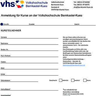 Im Internet mit Kontaktformular, per E-Mail (vhs@bernkastel-kues.de),