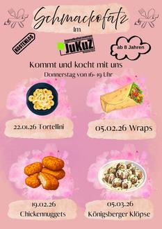 Unsere Schmakofatz Küche im Jukuz geht weiter. Kommt einfach rein, wenn ihr Lust habt mitzumachen. Ihr müsst Euch nicht anmelden und das Angebot ist kostenfrei. Wir freuen uns auf Euch.