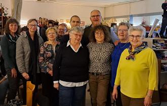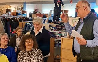 Einige der 25 anwesenden Mitglieder von Kleider& mehr e.V., die mit großem Interesse den Ausführungen von Dr. Schwarz (3. v. re., hinten) folgten.